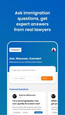 Welcome to Immigration Question, your go-to app for all your immigration needs! Whether you're looking to migrate, study, work, or reunite with family in the US, our app provides expert advice from verified attorneys, comprehensive resources & immigration news, and personalized support to help you navigate the complex world of immigration with confidence.
